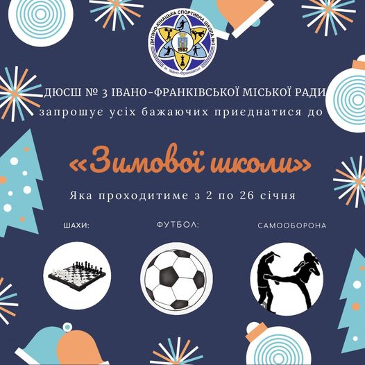 ДЮСШ N3 Івано-Франківської міської ради також запрошує всіх охочих у «Зимову школу» з 2 до 26 січня