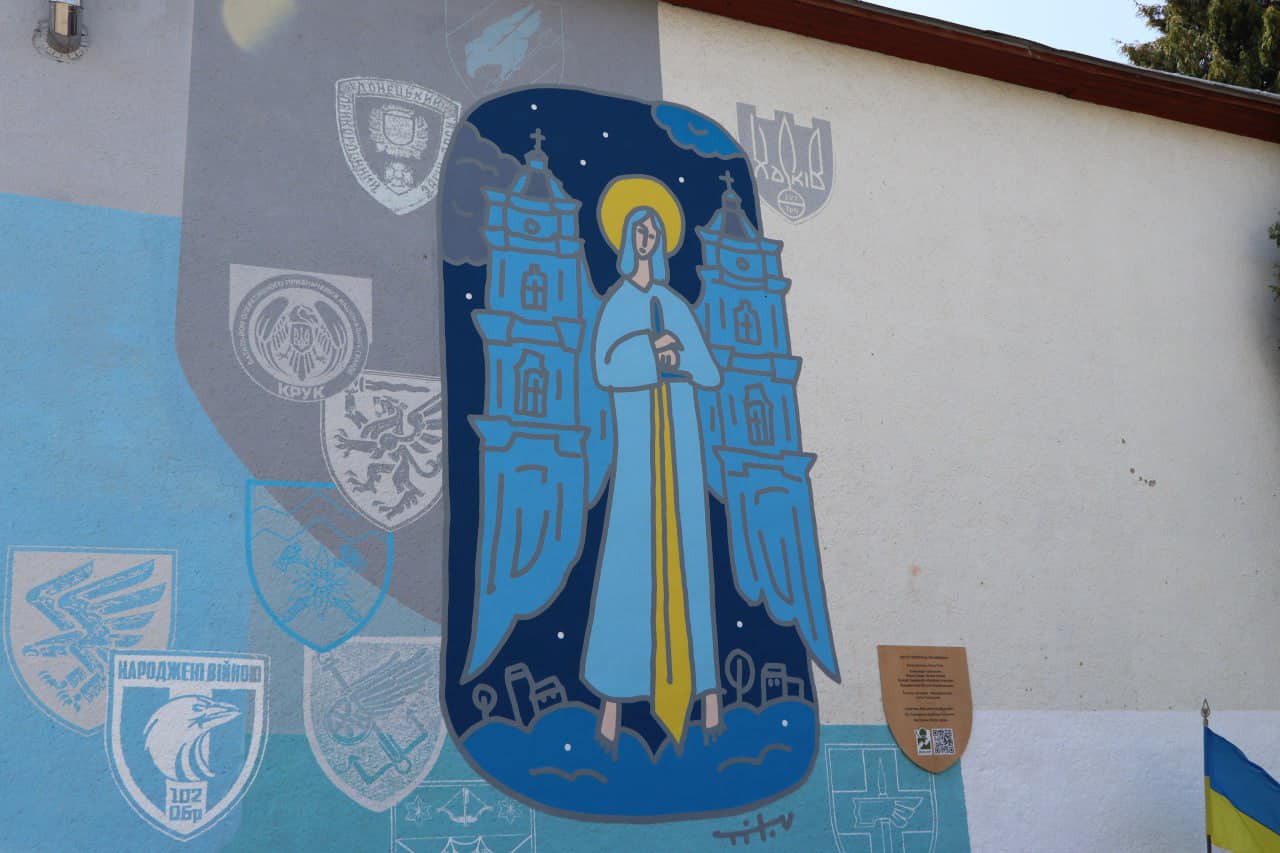 Поруч з ангелом також зобразили шеврони бригад тих захисників, що навчалися у цьому закладі.