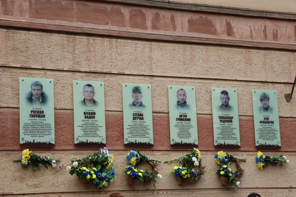 На фасаді Ліцею №13 Івано-Франківської міської ради відкрили пам'ятні дошки ще двом загиблим випускникам. Вони ще нещодавно ходили коридорами цього закладу, а зараз проводжають поглядом майбутні покоління з анотаційних знаків.