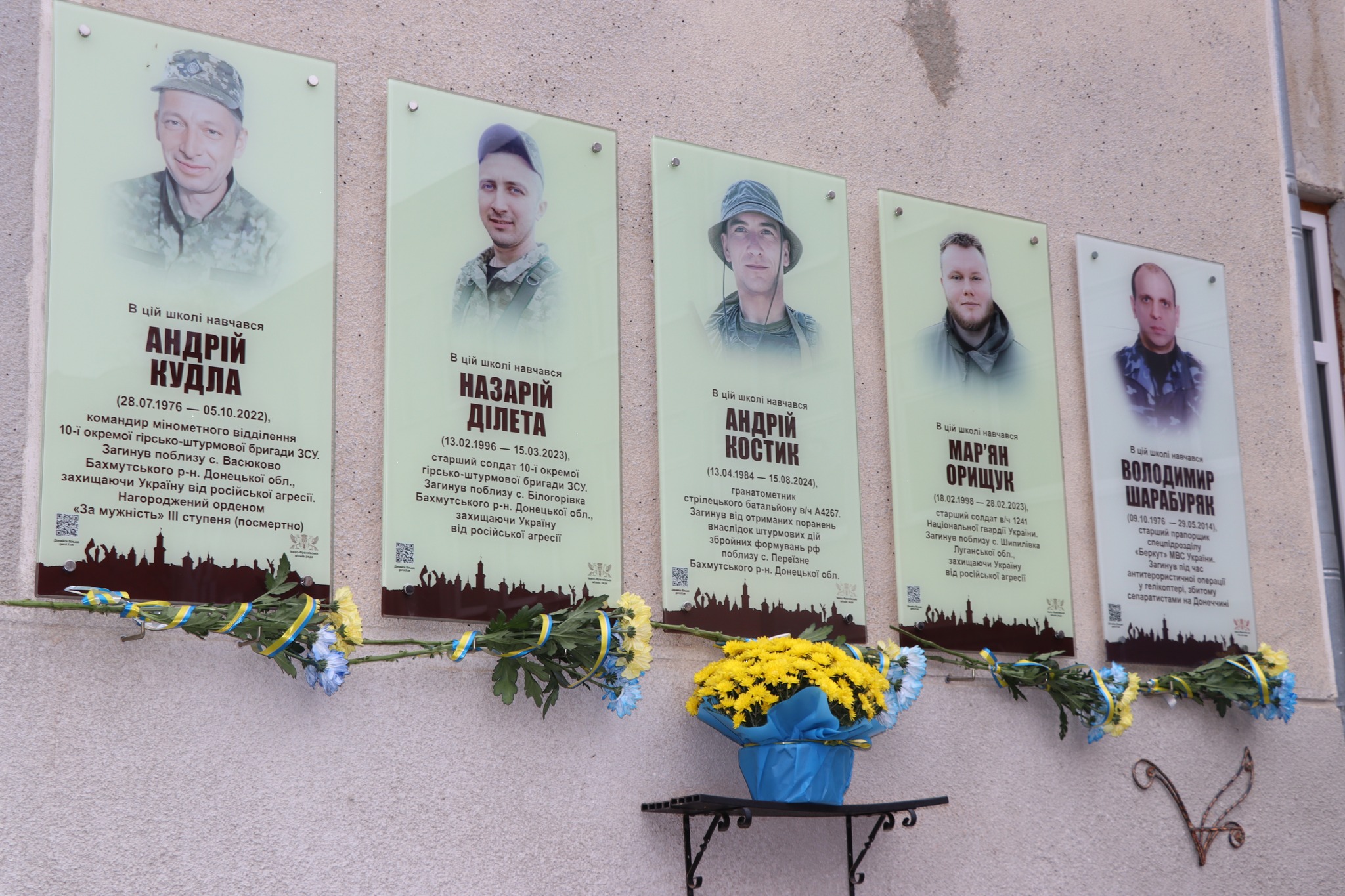 Сьогодні у Ліцей 19 Івано-Франківської міської ради відкрили анотаційні дошки на честь Андрія Костика та Петра Добровольського — мужніх захисників, які віддали життя за Україну.