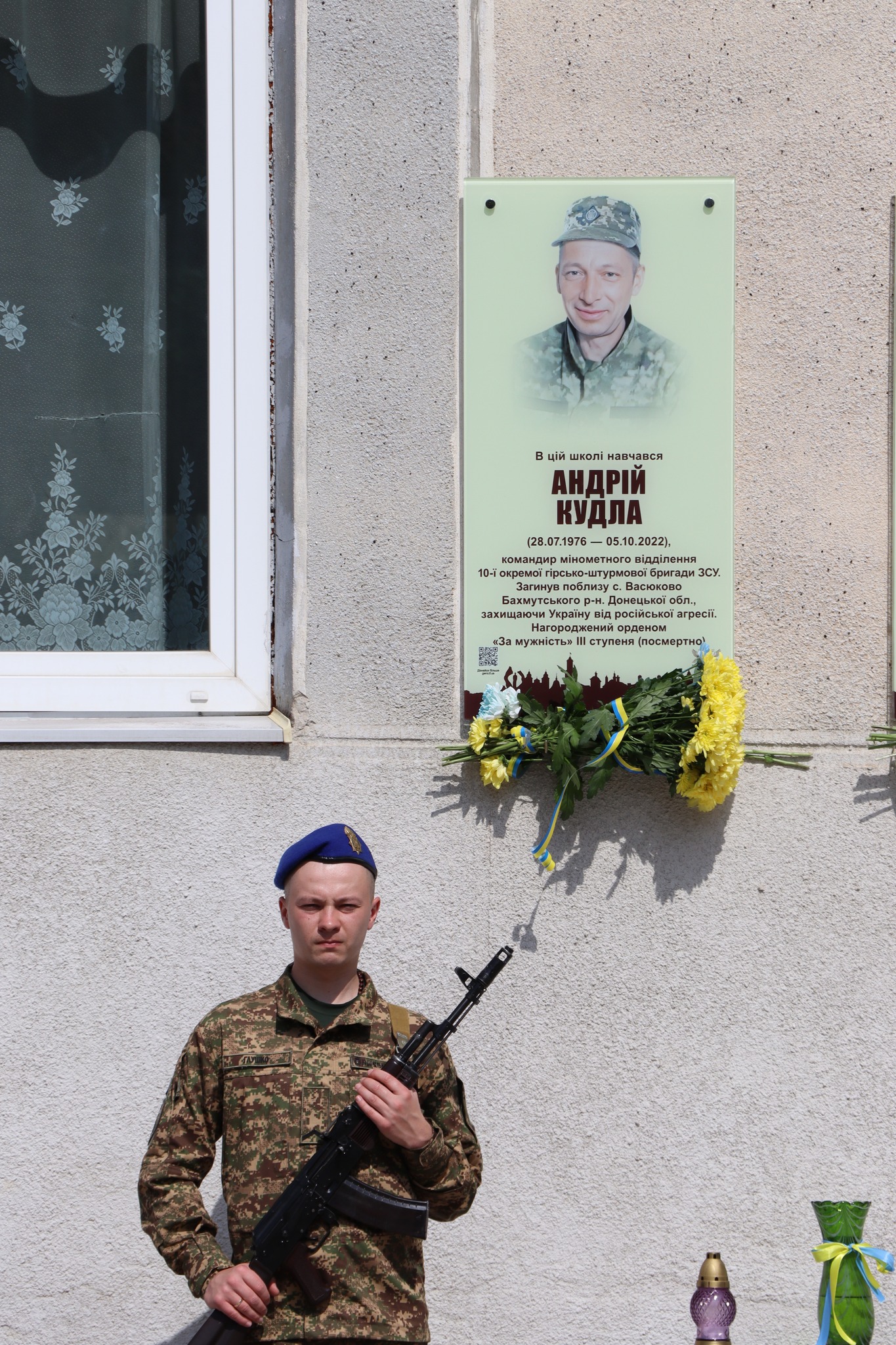 Сьогодні на фасаді його рідного Ліцей 19 Івано-Франківської міської ради відкрили памʼятну дошку Андрію Кудлі, командиру мінометного відділення 10-ї окремої гірсько-штурмової бригади ЗСУ.