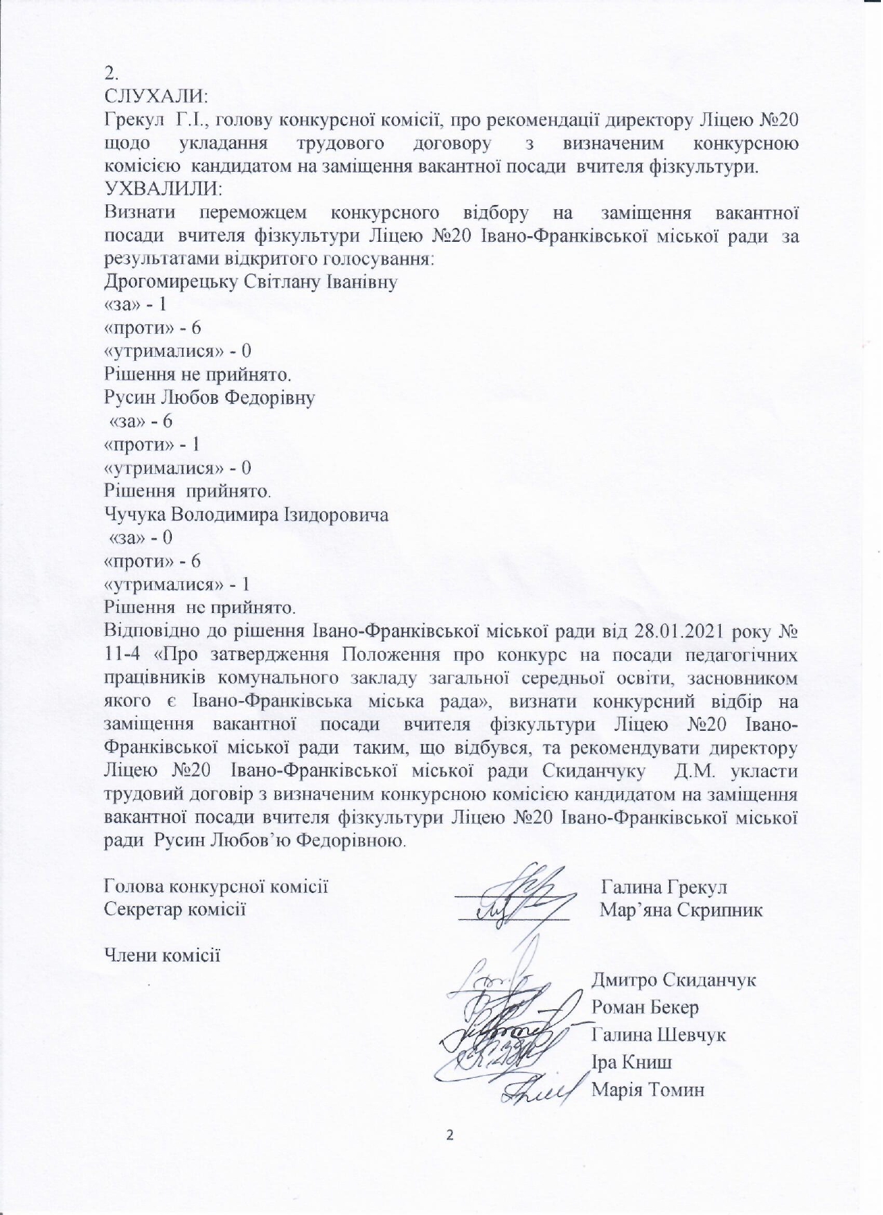 Засідання конкурсної комісії | Ліцей № 20